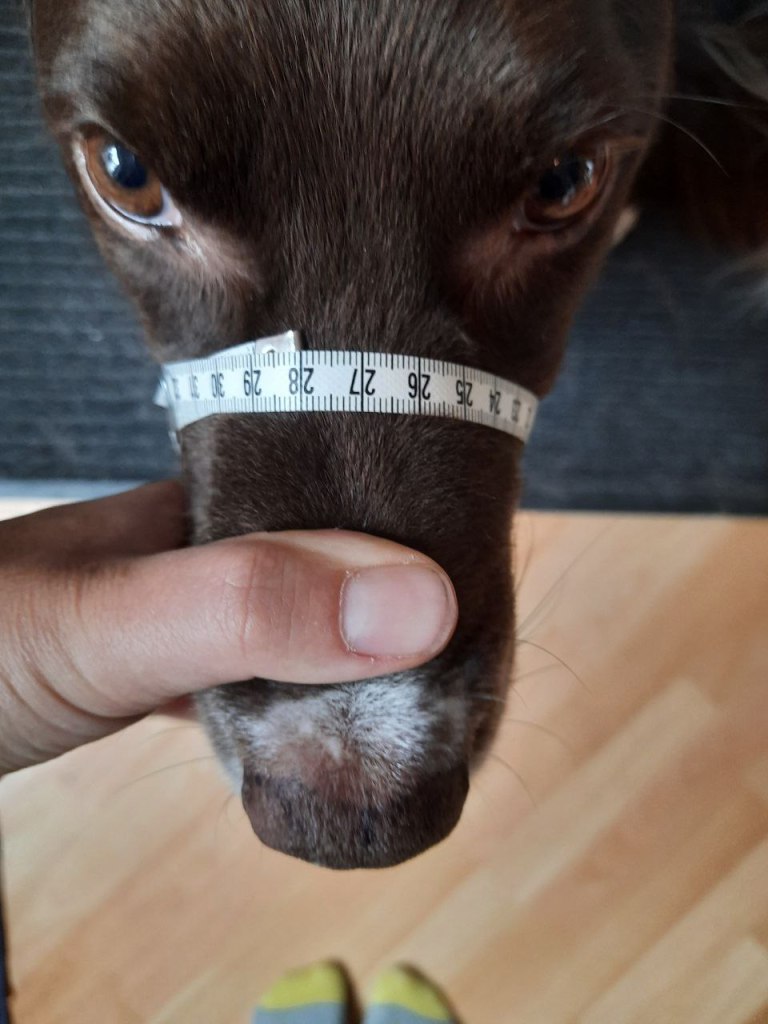 Diese bestellst Du dann, machst erneut Fotos mit den Maulkörben und ich helfe Dir dabei, den richtigen auszusuchen.